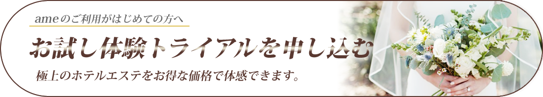 ドレスからはみ出る背中のムダ肉を徹底スリミングケアした後に、白く透き通った輝く背中を実現させるための背中洗浄&美白ケア。フラッシュに耐える隙のないお肌へ仕上げていく贅沢なブライダル専用パーツケアです。
